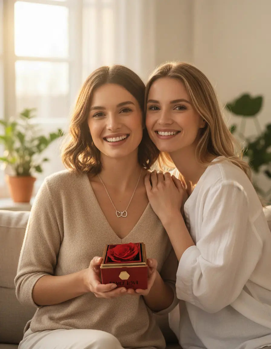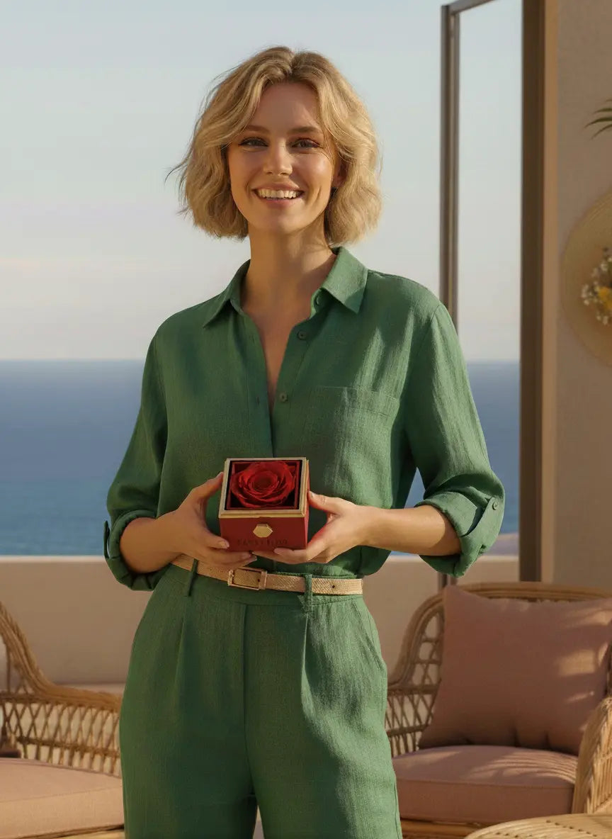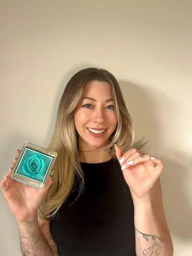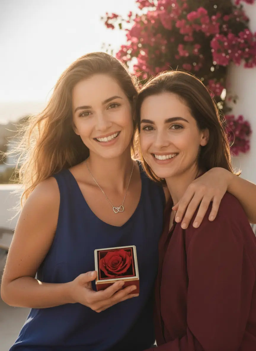 La rosa real preservada no se puede encontrar en tiendas debido a su diseño exclusivo. Somos la única joyería en España que combina personalización profesional, rosa eterna premium y envío exprés 24-48h en un solo pack completo.